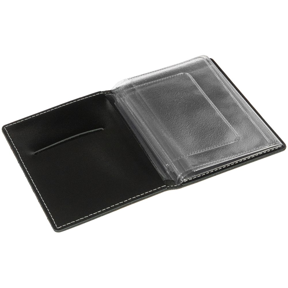 Бумажник водителя: шесть пластиковых карманов (в том числе, для документов водителя, доверенности, страхового полиса), спереди и сзади — прорези для сим-карт и пластиковых карт.