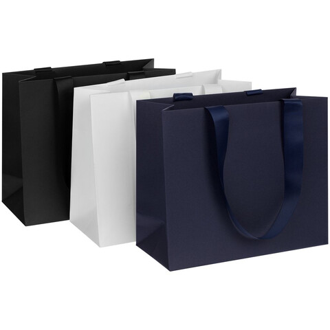 Пакет на лентах из бумаги Deep Black плотностью 200 г/м². Выдерживает вес до 2,5 кг.