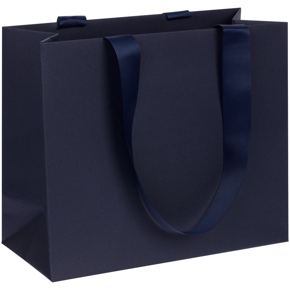 Пакет на лентах из бумаги Midnight Blue плотностью 230 г/м². Выдерживает вес до 2,5 кг.