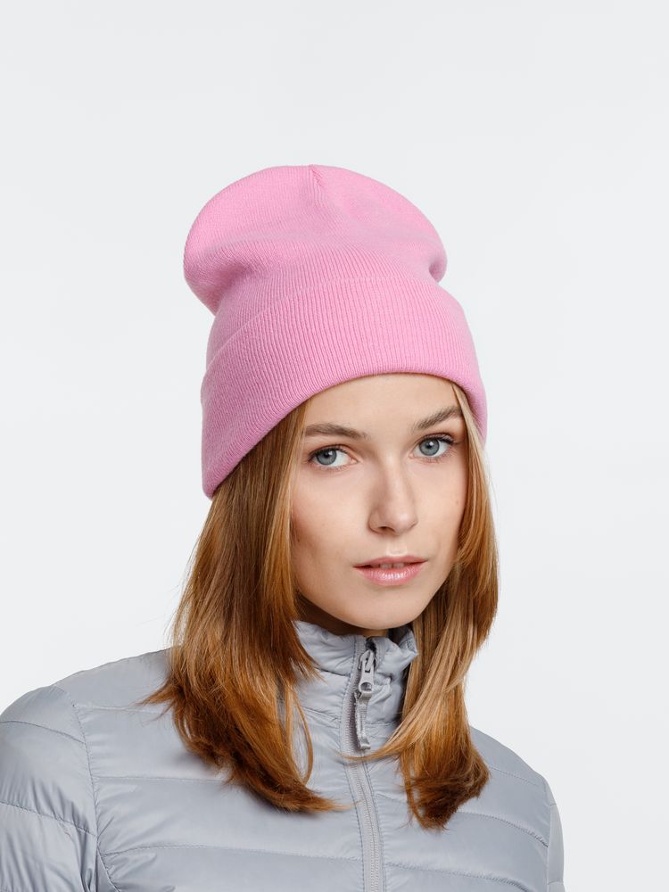 Двухслойная шапка из акриловой пряжи с регулируемым отворотом 7–10 см. Поставляется в пакете с липким краем.