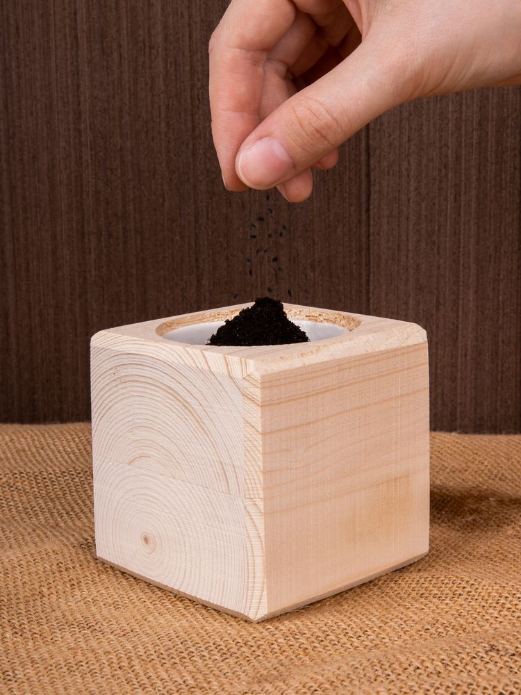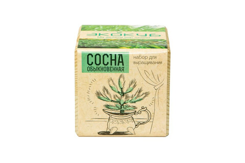 В наборе: деревянный куб, грунт, семена сосны.