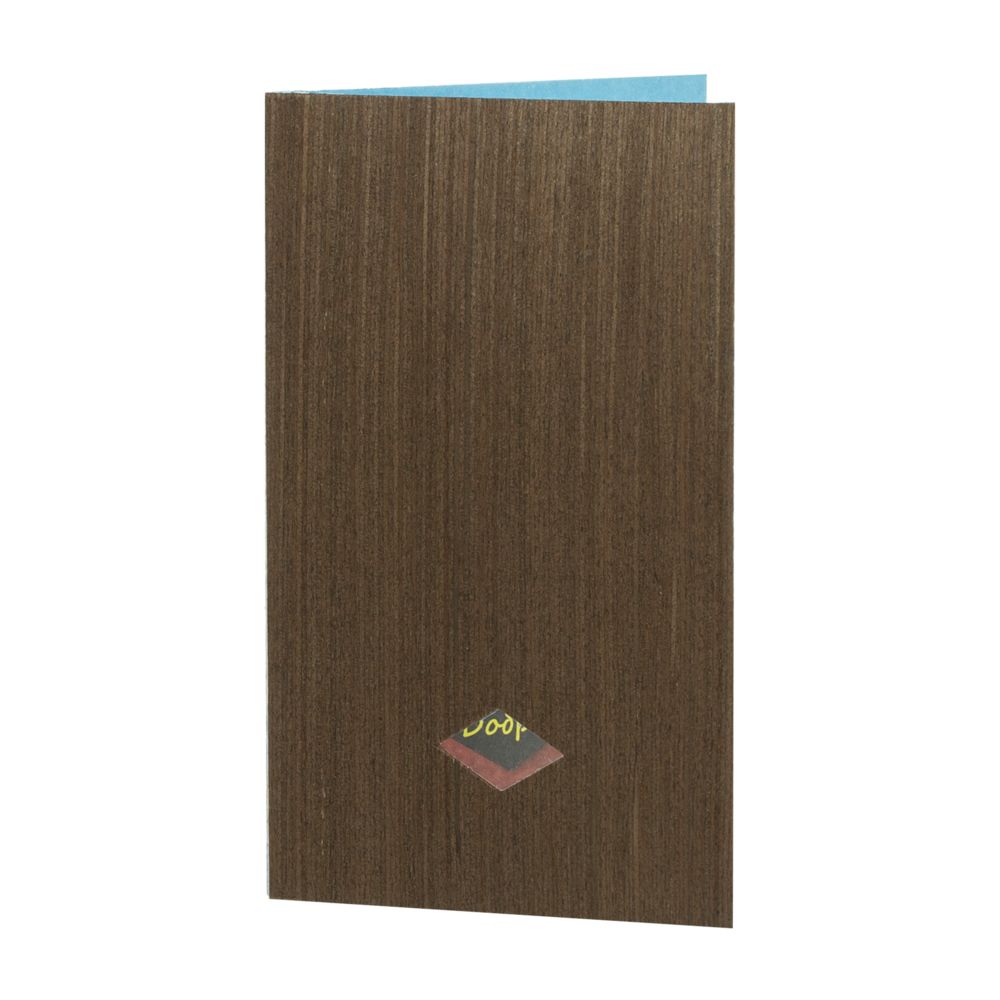Как яркие краски фруктов прячутся под крышкой коробки, так и эта открытка до поры скрывает свою праздничную сущность — можно лишь подсмотреть в щелочку и попытаться угадать, что скрывается под обложкой из шпона.