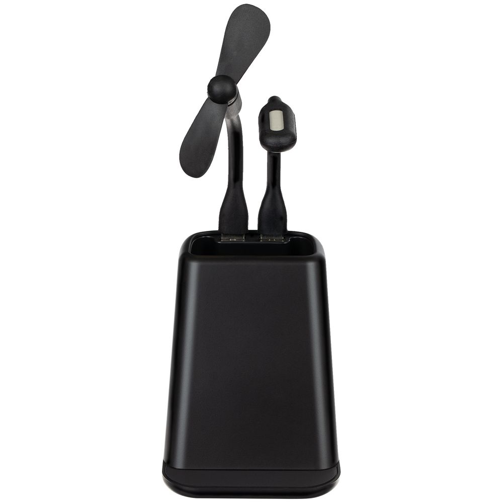 Дополняют функционал устройства портативная лампа и вентилятор, которые входят в комплект. Порты для подключения лампы и вентилятора можно использовать для зарядки гаджетов.