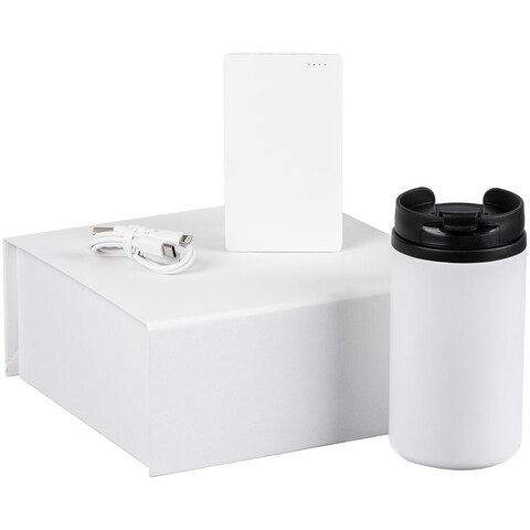 Набор Easy Trick — незаменимый спутник в дороге и офисе, с которым легко восполнить заряд энергии. Плоский аккумулятор легко поместится даже в карман, а компактная термокружка — в любую кофемашину.