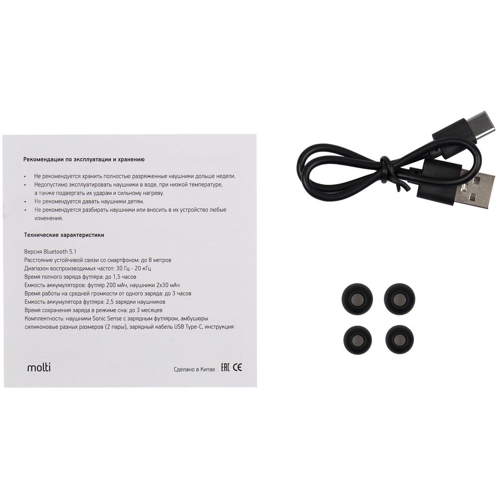 - Время работы наушников при средней громкости от одного заряда: до 3 часов