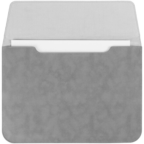 Чехол для ноутбука с диагональю до 13", выполнен из материала Nubuck, светло-серый СС, внутри серый велюр. Можно использовать в качестве папки для бумаг.