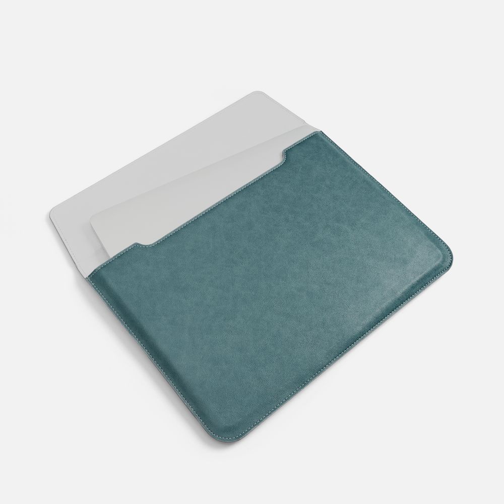 Чехол для ноутбука с диагональю до 15,6 выполнен из материала Petrus, голубой JJ, дополнен окрашенным срезом края серого цвета.
