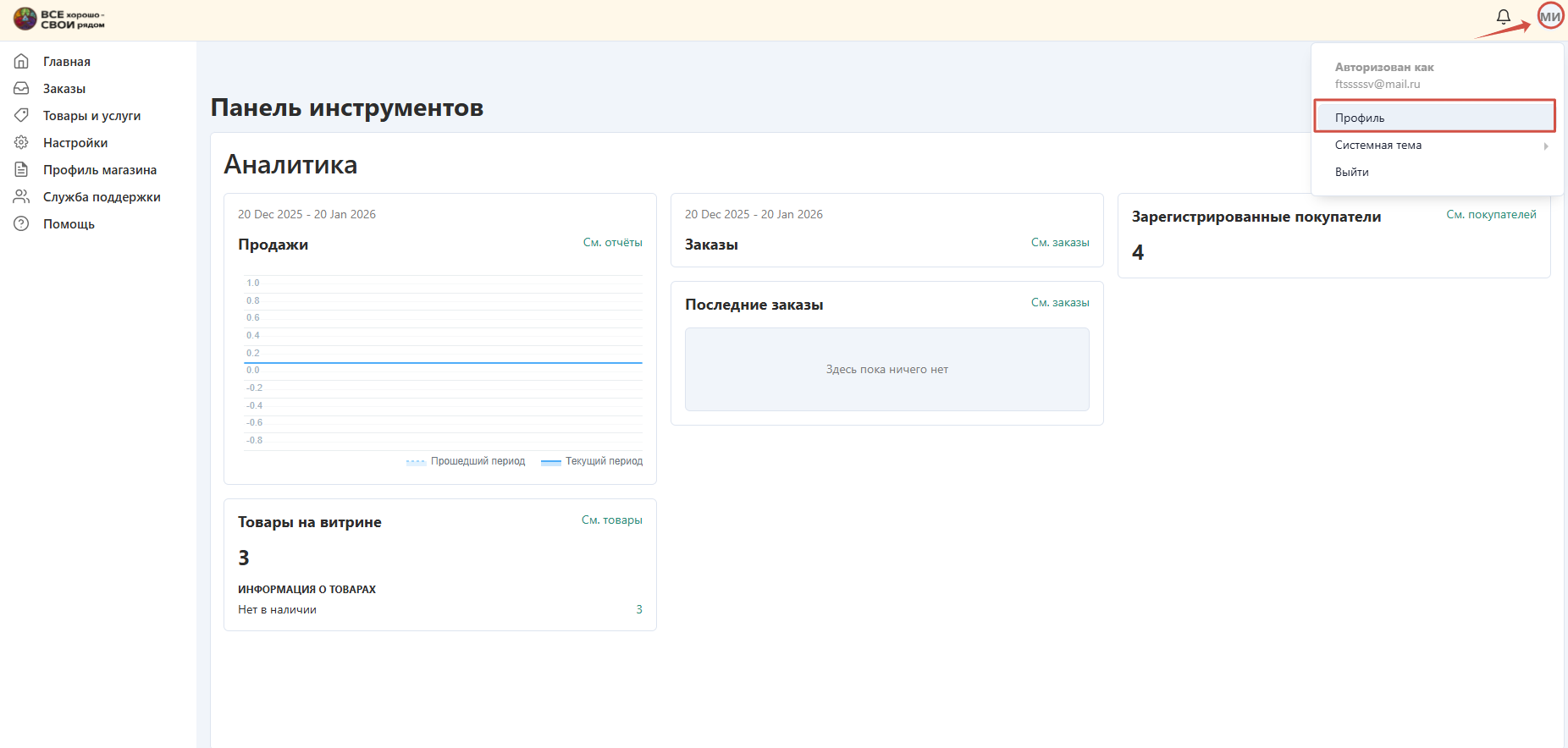Как попасть к панели администратора магазина?1. Чтобы зайти в админпанель вашего магазина, необходимо перейти на витрину и авторизоваться, используя электронную почту, на которую вы регистрировались.