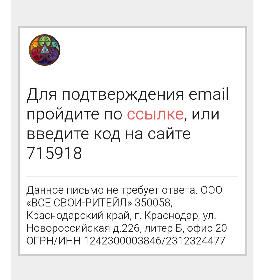 3. На вашу почту придет код подтверждения из шести цифр.