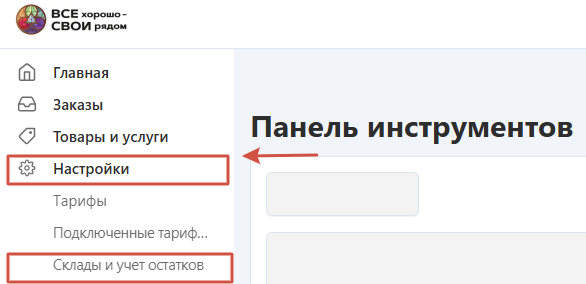 Когда магазин будет подтвержден, вам откроется доступ к настройкам. Для дальнейшего запуска необходимо настроить склад и добавить товары.