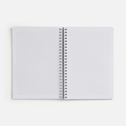 Блокнот в клетку на металлической пружине с двойной обложкой. Верхняя вставка из полупрозрачного матового пластика добавляет жесткости, расширяет возможности нанесения, а также придает обычному блокноту на пружине более современный вид.