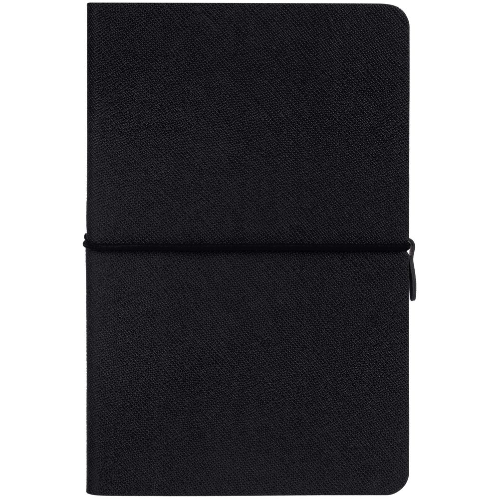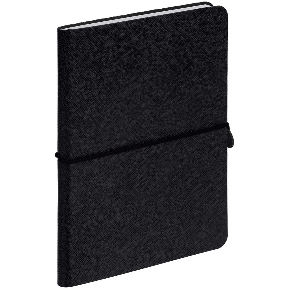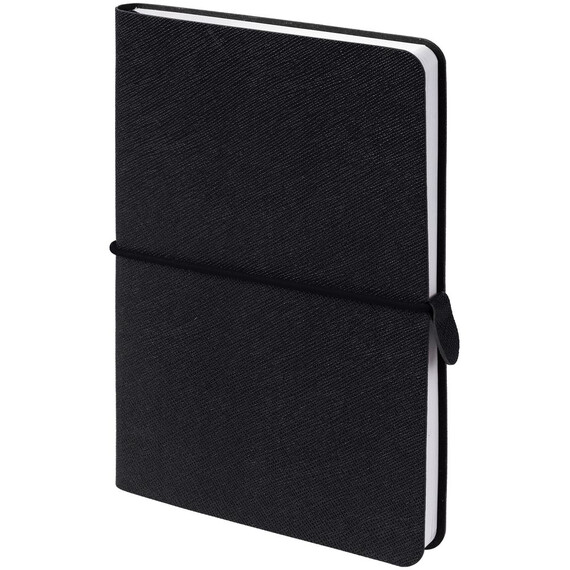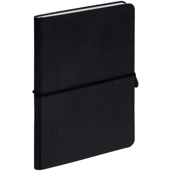 Блокнот с гибкой обложкой, выполнен из материала Saffian, черный АА. Дополнен ляссе в цвет обложки.