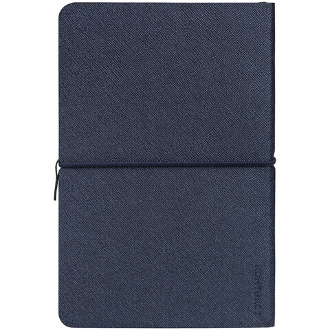 Блокнот с гибкой обложкой, выполнен из материала Saffian, синий НН. Дополнен ляссе в цвет обложки.