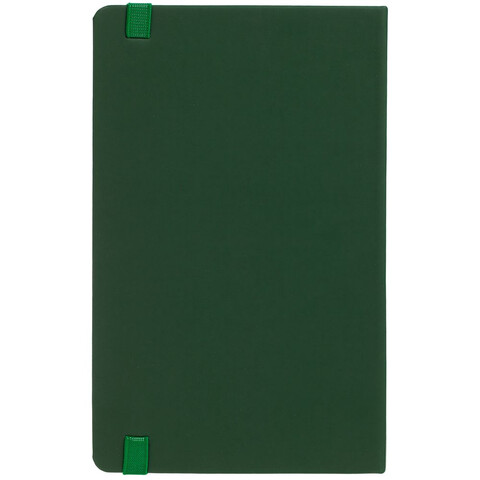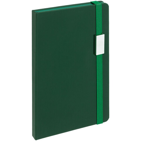 Блокнот в твердой обложке, выполнен из материала Soft Touch, зеленый FF, дополнен резинкой и ляссе в цвет обложки.