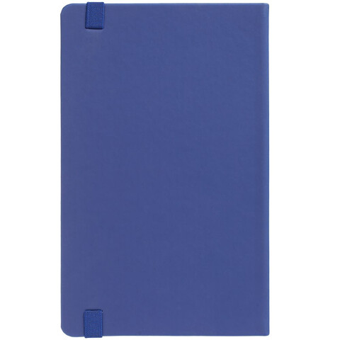 Блокнот в твердой обложке, выполнен из материала Soft Touch Pearl, синий НН, дополнен резинкой и ляссе в цвет обложки.