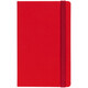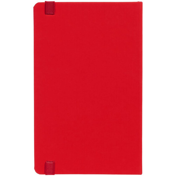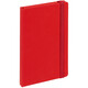 Блокнот в твердой обложке, выполнен из материала Soft Touch Ultra, красный РР, дополнен резинкой и ляссе в цвет обложки.