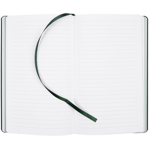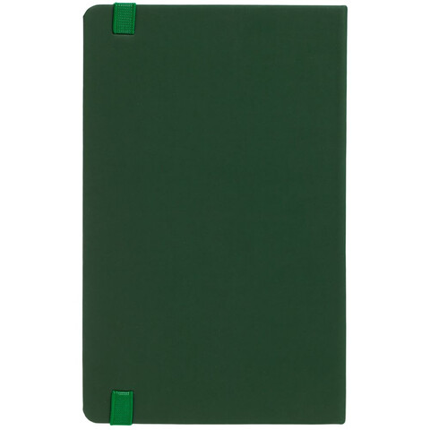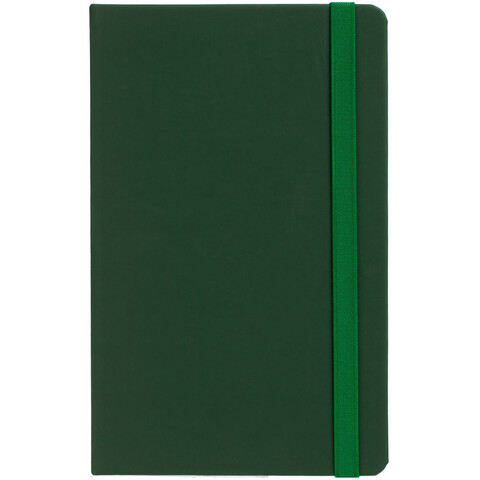 Блокнот в твердой обложке, выполнен из материала Soft Touch, зеленый FF, дополнен резинкой и ляссе в цвет обложки.