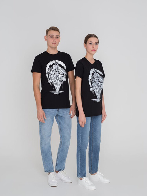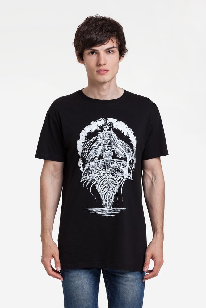 Для моряков появление загадочного «Летучего Голландца» считалось плохим предзнаменованием. Другое дело — одноименный принт, по исполнению напоминающий настоящую старинную гравюру. Только для несуеверных и сильных духом.Бесшовная футболка с круглым вырезом.