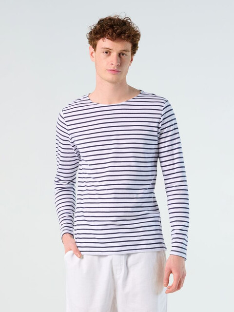 Кроеная футболка с длинными рукавами и круглым воротом из 100% гребенного хлопка.