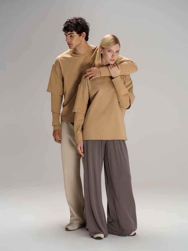 Футболка оверсайз с двойным рукавом Kosmos, бежевая