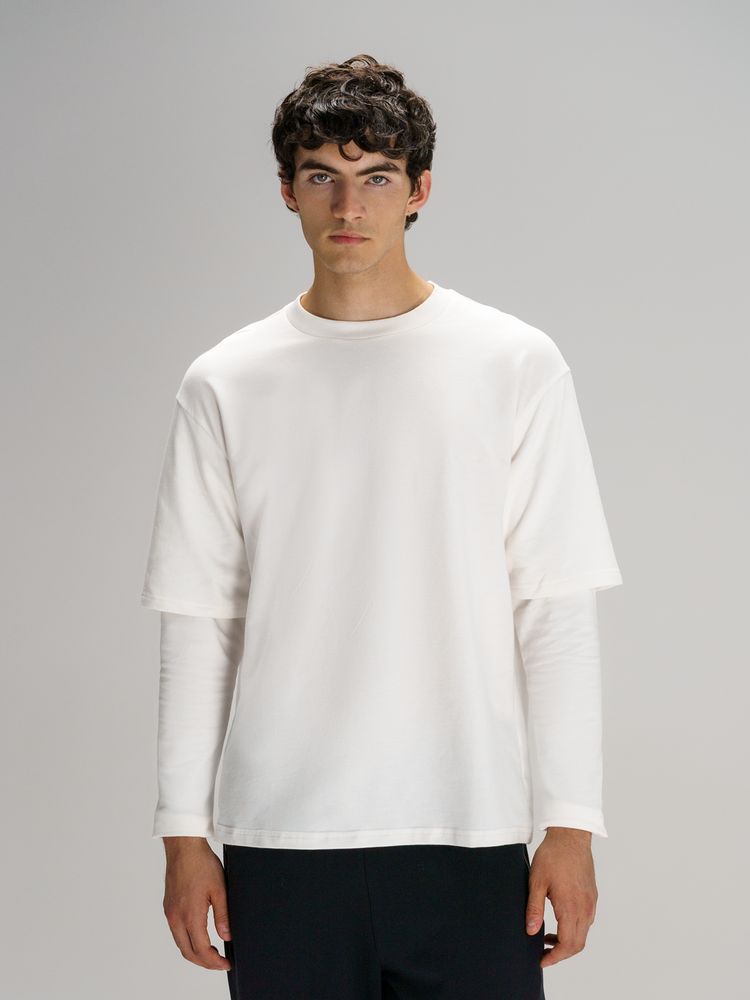 Футболка оверсайз с двойным рукавом Kosmos, молочно-белая