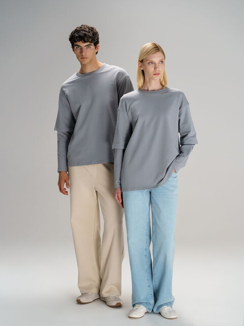 Футболка оверсайз с двойным рукавом Kosmos, светло-серая