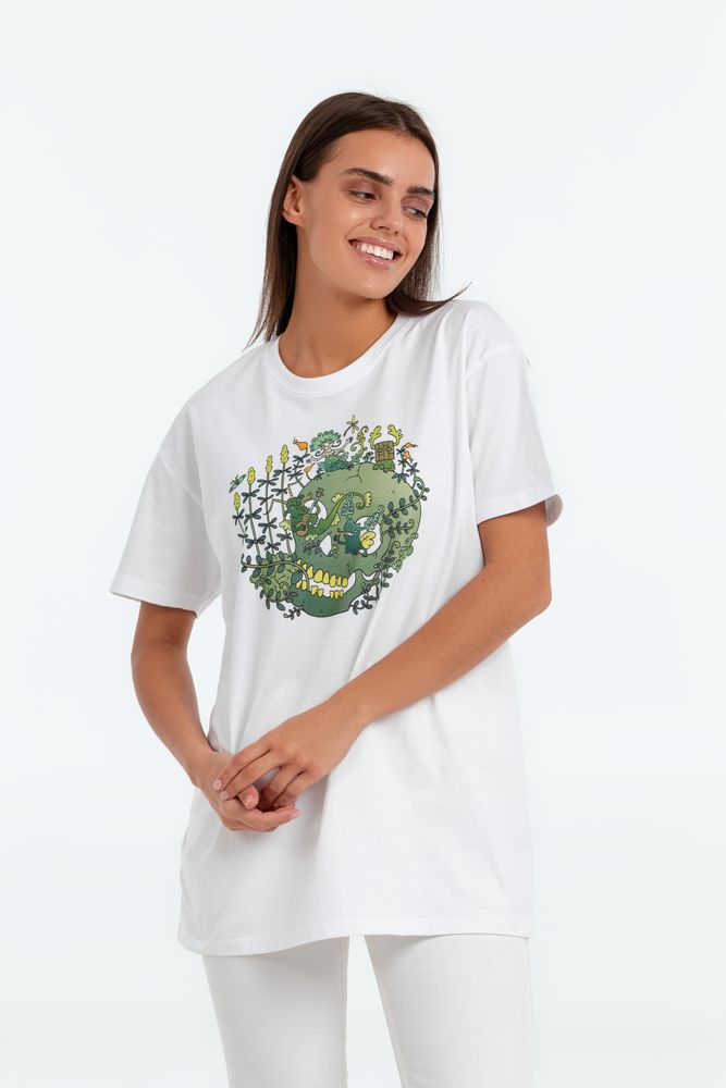 Дизайн футболки «Серенада» представляет собой своеобразную русскую готику в остроумном переосмыслении художника.