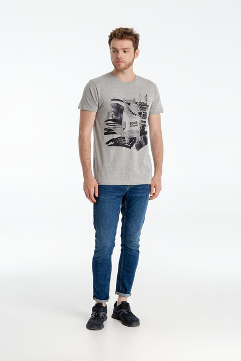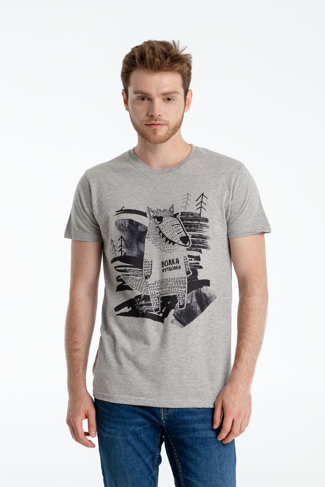 Пока человек человеку волк, для волка человеку и футболки не жалко! И пусть она не из волчьей шерсти, зато похожего цвета!Бесшовная футболка с круглым вырезом.