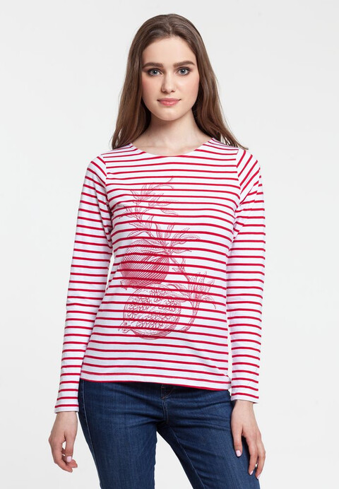 Кроеная футболка с длинными рукавами и круглым воротом из 100% гребенного хлопка.