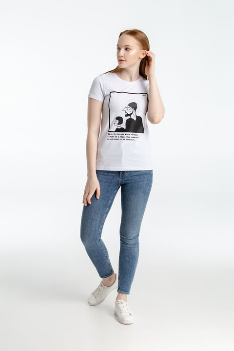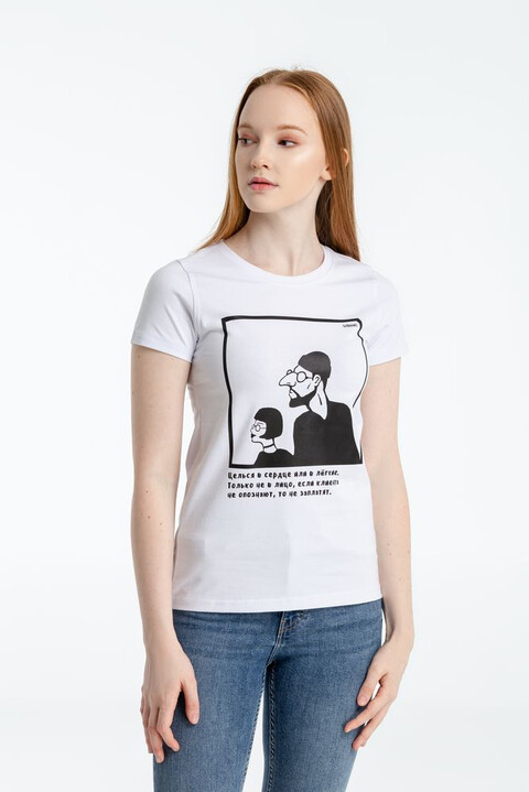 Дизайн принта: Яков Коган.Приталенная женская футболка стретч высокого качества.