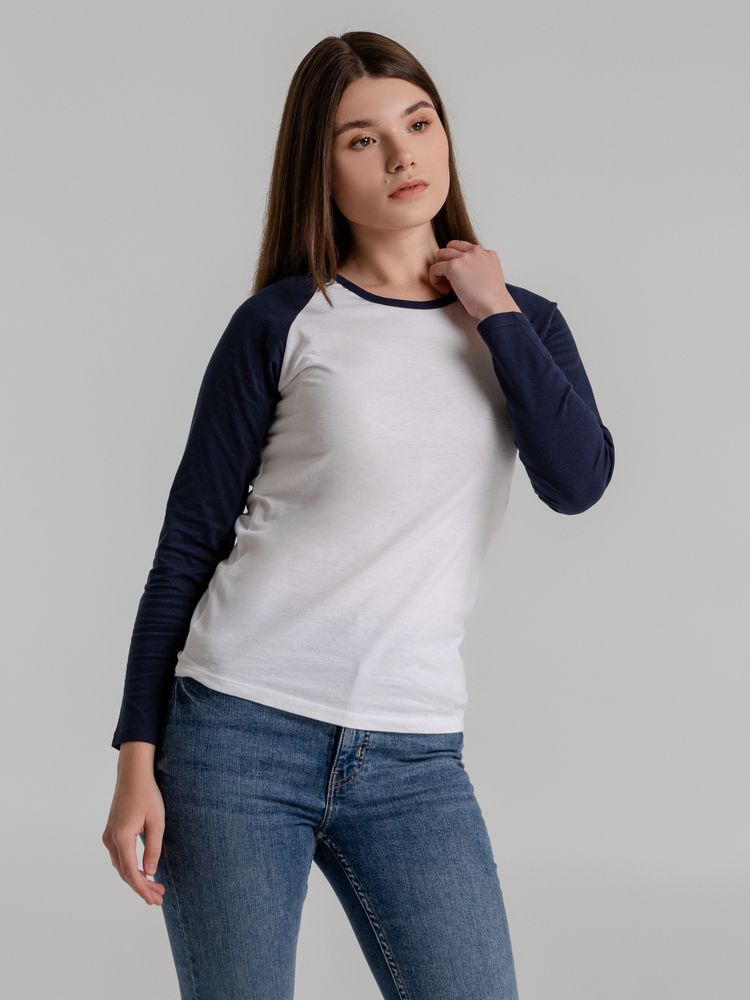 Минимальное количество для товара "Футболка женская с длинным рукавом Milky Lsl, белая с темно-синим" 5.