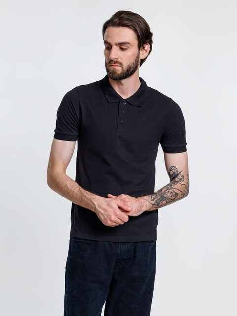 Мужская рубашка поло прямого силуэта с разрезами по бокам.