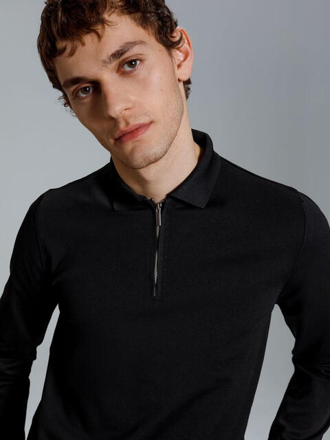 Модная рубашка поло из гладкого полотна идеально садится по фигуре. Металлическая молния на планке делает образ современным и лаконичным.