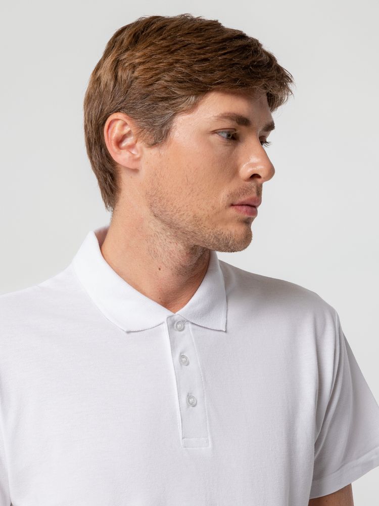 Мужская рубашка поло классического силуэта из гребенного хлопка, низ изделия прямой.