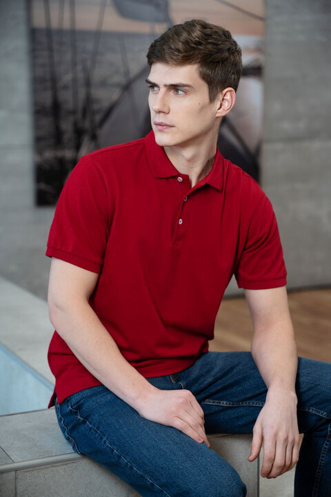 Классическая рубашка поло из гребенного хлопка с разрезами по бокам.