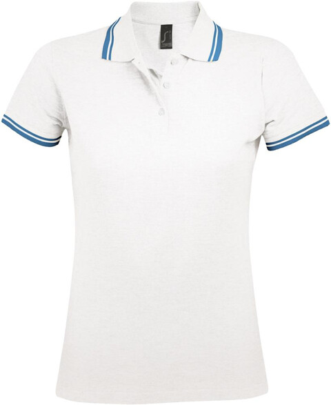 Рубашка поло женская Pasadena Women 200 с контрастной отделкой, белая с голубым
