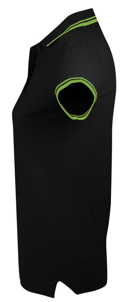 Рубашка поло женская Pasadena Women 200 с контрастной отделкой, черная с зеленым