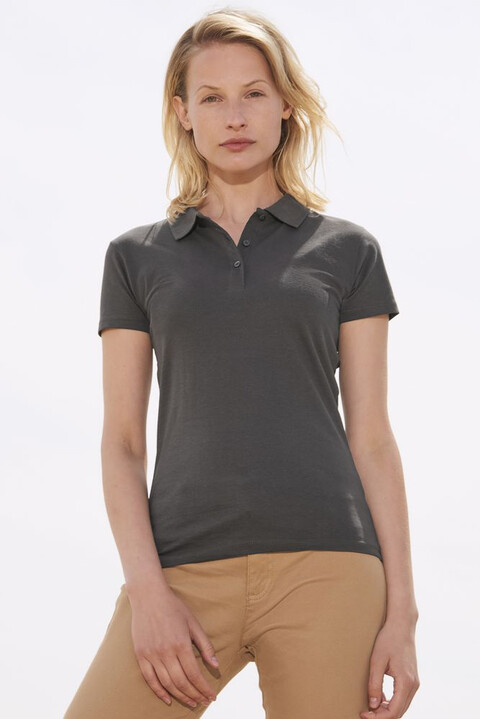 Базовая женская рубашка поло приталенного силуэта. Выполнена из кулирной глади.