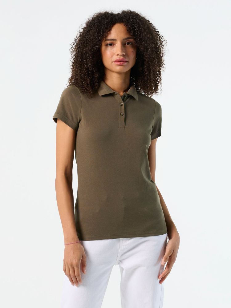 Классическая женская рубашка поло приталенного силуэта. Планка с 3 пуговицами в тон Таблица размеров, см S M L XL XXL A 43 46 49 52 55...