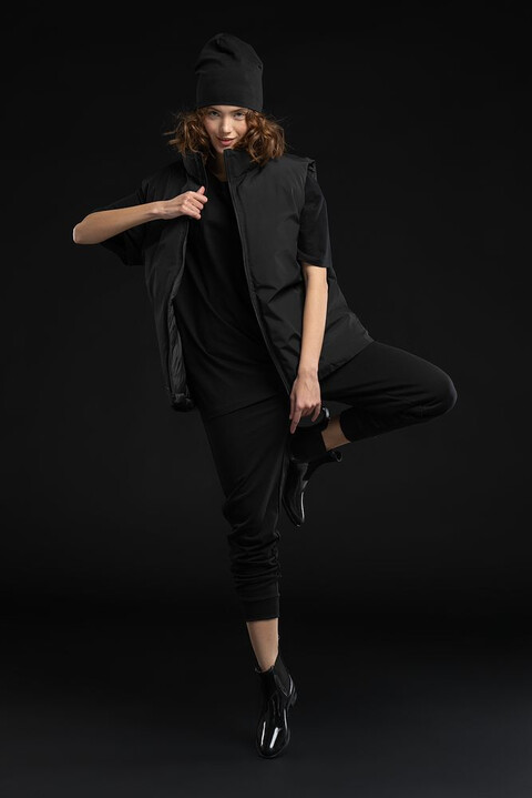 Двусторонний утепленный жилет V2 — это сразу два стильных образа в одном изделии. С одной стороны он стеганый и глянцевый, а с другой — матовый, лаконичный и уже без прострочки. Объемная и легкая модель оверсайз позволяет создать непринужденный и комфортный образ и в городе, и в путешествии.