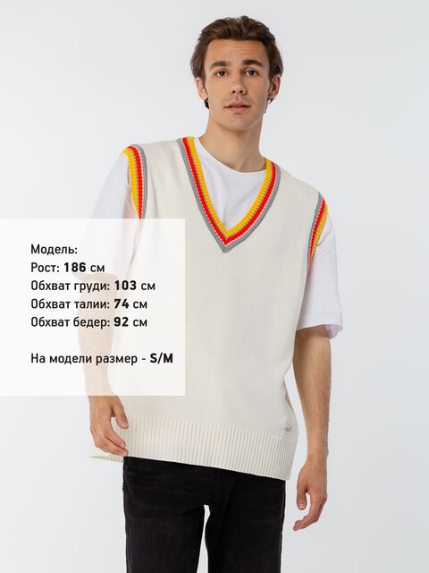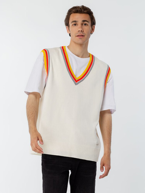 Оверсайз жилет с V-образным вырезом и цветной отделкой.