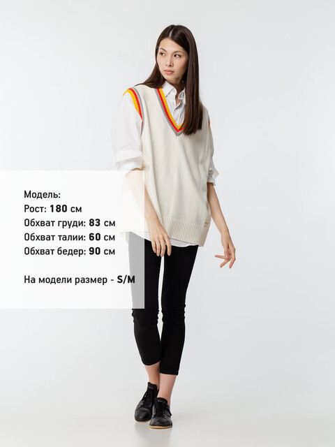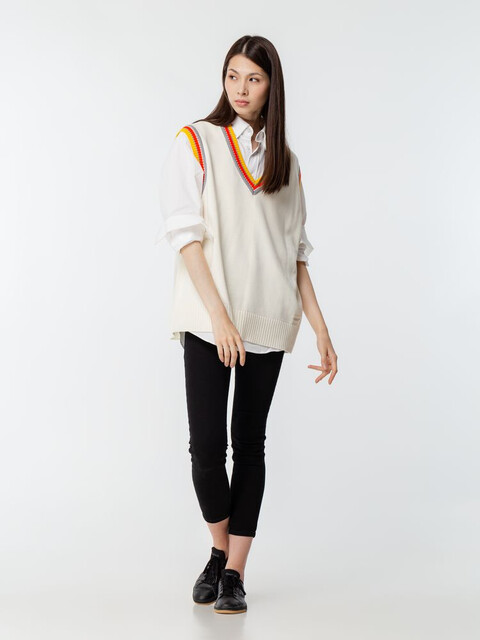 Оверсайз жилет с V-образным вырезом и цветной отделкой.