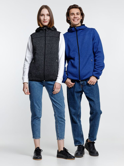Вязаный жилет унисекс на молнии с капюшоном.