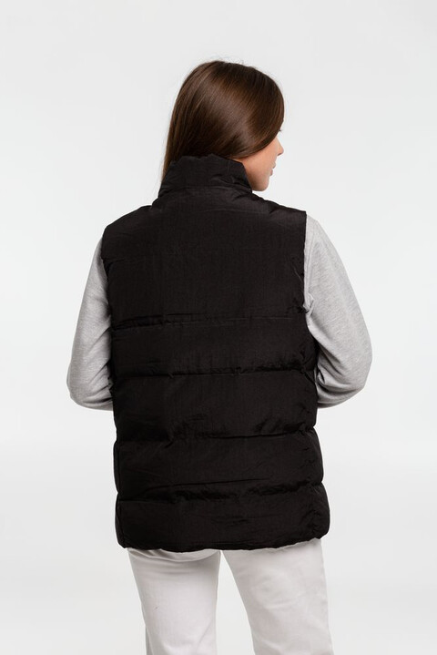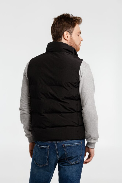 • Утепленный жилет на молнии с воротником стойкой и 2 наружными карманами
