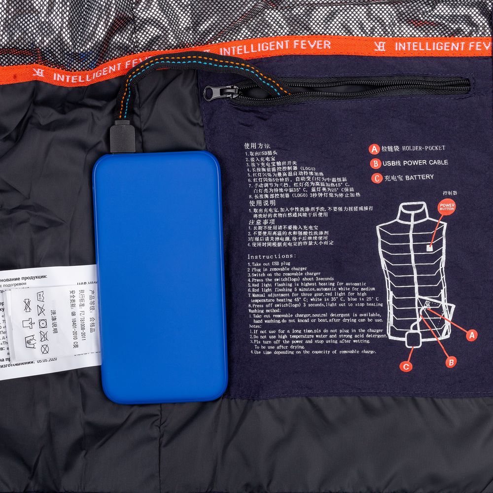 Утепленный жилет со встроенным нагревательным элементом из углеродного волокна в области спины и шеи. Работает от внешнего аккумулятора (в комплект не входит), подарит ощущение тепла и комфорта в любую погоду.