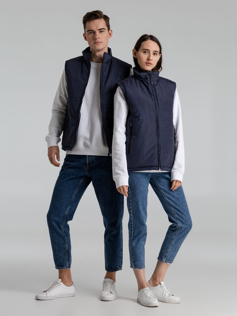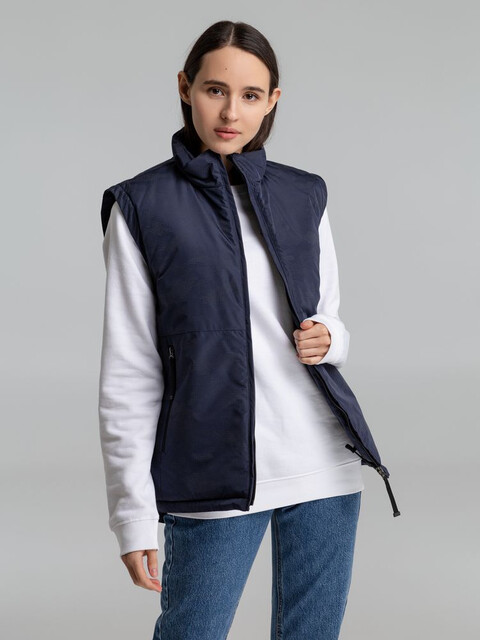Жилет с воротником-стойкой и светоотражающим рисунком.