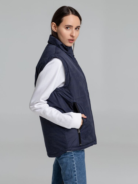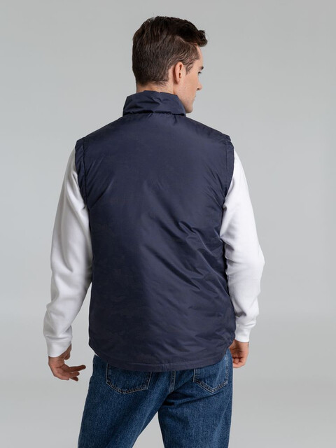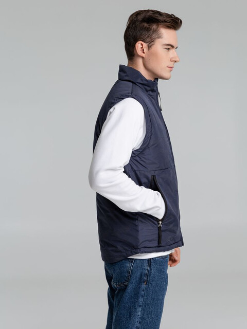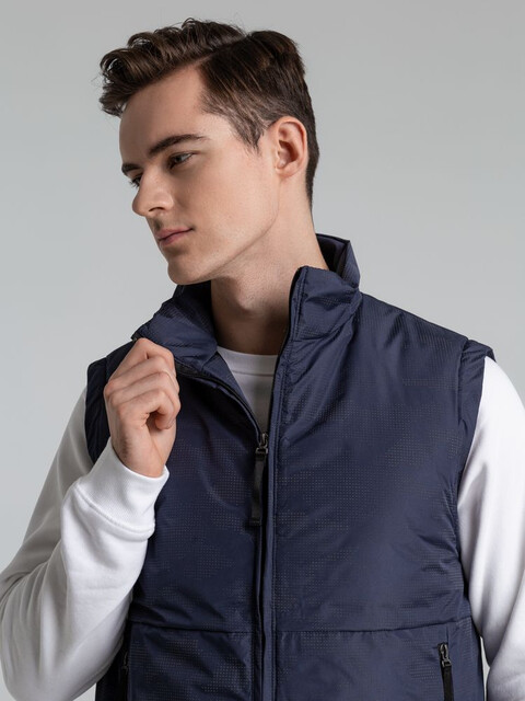 Жилет с воротником-стойкой и светоотражающим рисунком.