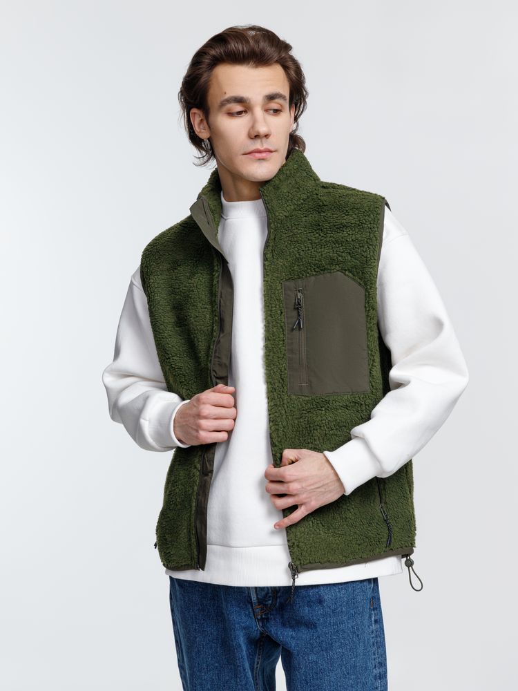 Жилет унисекс из фактурной искусственной шерпы с гладкой отделкой из таслана.