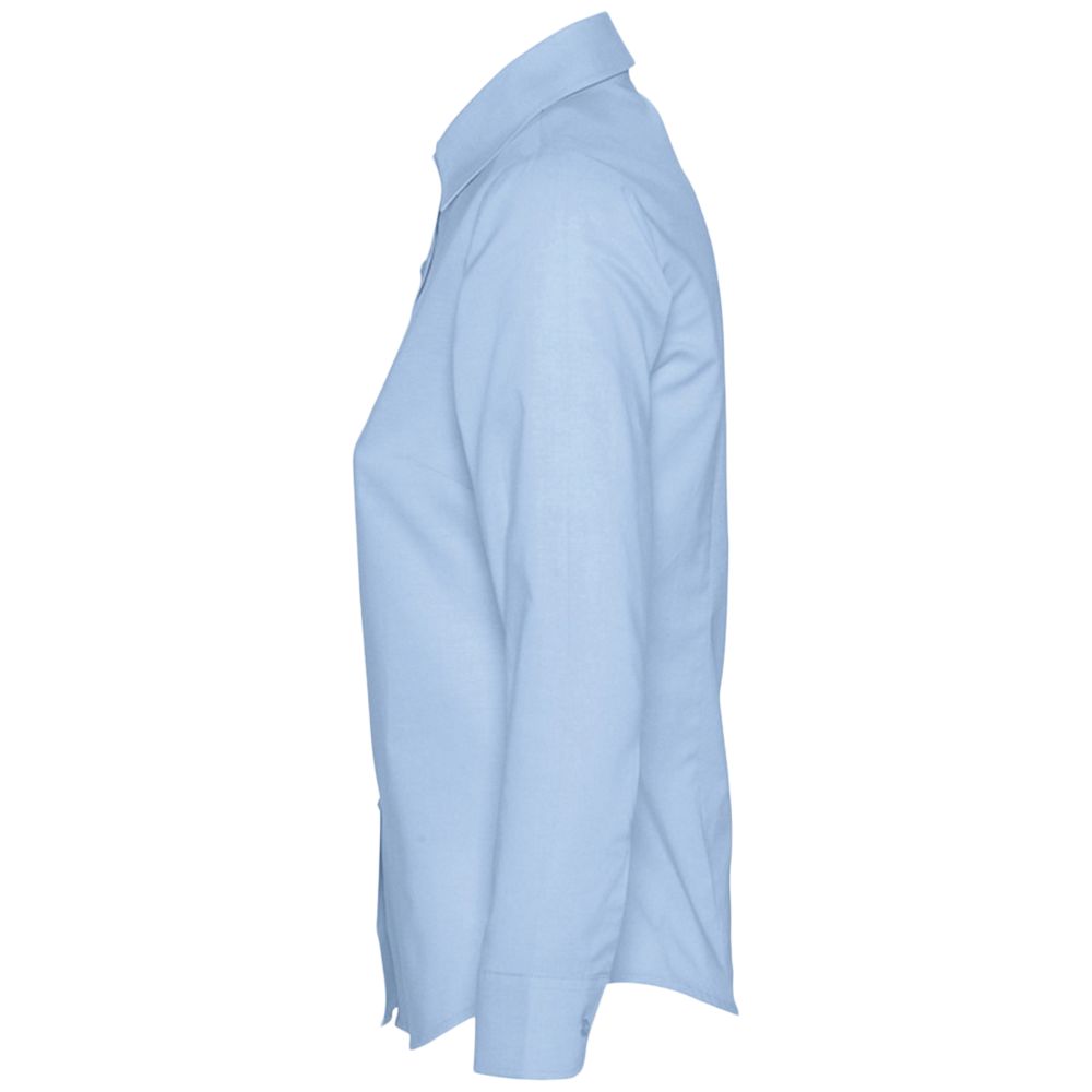 Рубашка из ткани «Оксфорд». Вытачки на груди, классический воротник, регулируемые закругленные манжеты, планка с семью пуговицами в тон.