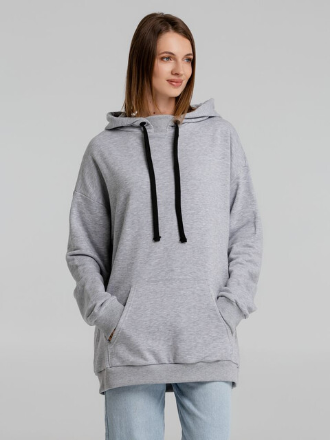 Худи унисекс со спущенным плечом и карманом-кенгуру.